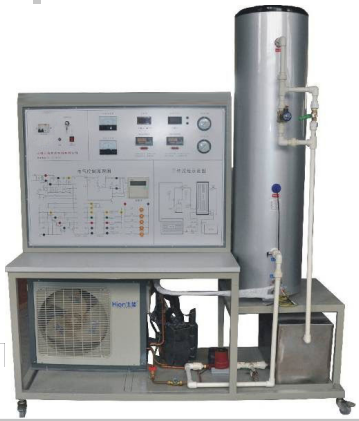 空气源热水器、循环水箱、保温水箱、四通换向阀、数显功率表、电流表、电压表、不锈钢水箱、