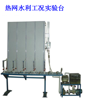 下半部由管道、阀门、流量计、稳压罐、锅炉、水泵组成,用来模拟由 5个用户组成的热水网路。上半部有高位水箱和安装在一块垂直木版上的12根玻璃管,玻璃管的顶端与大气相通,玻璃管下端用胶管与网路分支点相接,用来测量热网用户连接点处的供水干管与回水干管的测压管水头(水压曲线高度)。每组用户的两支玻璃管间附有标尺以便直观的读出各点压力。