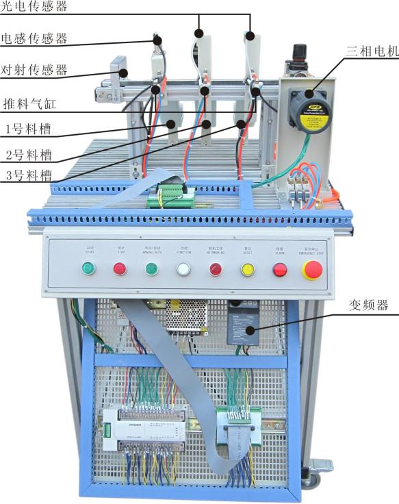 选用该装置配置的机电一体化设备部件、 PLC 模块、变频器模块和指令开关、传感器等,可完成下列机电设备安装和机电一体化技术的工作任务: