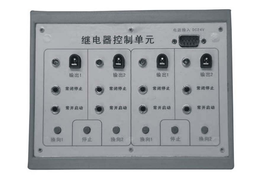 利用每组的测试按钮作为主令按钮,同时为继电器控制模块提供两个常开启动信号、两个常闭信号。利用每组的输入插孔,对接入的触点开关信号进行转换及扩展。并可以输入三线传感器信号(正电源、负电源、信号)。