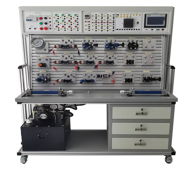 ?? 液压与 PLC控制实训装置是我公司根据高校机电一体化对电、液控制的教学大纲要求,我公司液压与PLC控制液压实训设备的优点,采用了开放型实训台结构,广泛征求专家教授与老师的意见,经不断创新改进研制而成的。