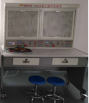6、實訓桌為鐵質雙層亞光密紋噴塑結構,桌面為防火、防水、耐磨高密度板。配有抽屜和元器件儲存柜。