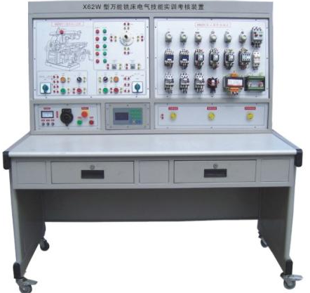 X62W型万能铣床实训及技能考核装置 ” 是为各大、中专院校、职业学校的电气、自动化及相关专业、社会电工培训、各县市维修电工鉴定所(站)等单位电气控制内容的教学、考核而研制的设备??捎糜诳翁醚菔?、机床电气控制原理性操作及实验实习。由于设备均采用实际电器,所以可作为社会电工类职业培训中机床电气维修方面的实习设备,同时也是职业资格培训考核中选用的设备。提高学生的动手能力,并克服以往只能在实际设备上进行教学,费用高且难以实现教学目的弱点。同时为高层次维修技能训练提供了有效的设备,达到了耗资少、教学效果显著的目的。